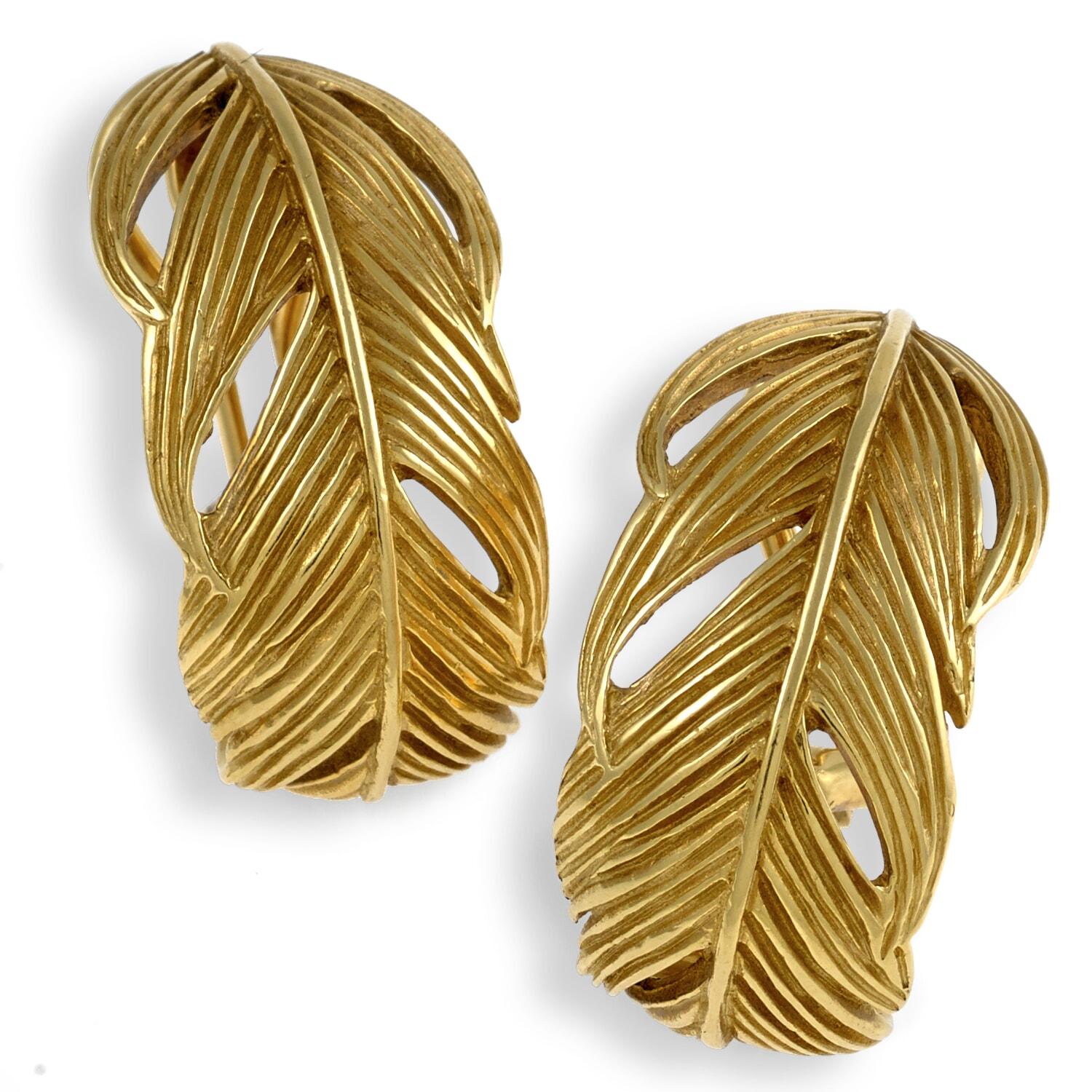 These beautiful wide feather earrings are plated with 18k gold and handfinished in America. Crafted with stunning detail, they have a wonderful omega-style back to them (no ear nuts to lose!) which just adds to their allure.