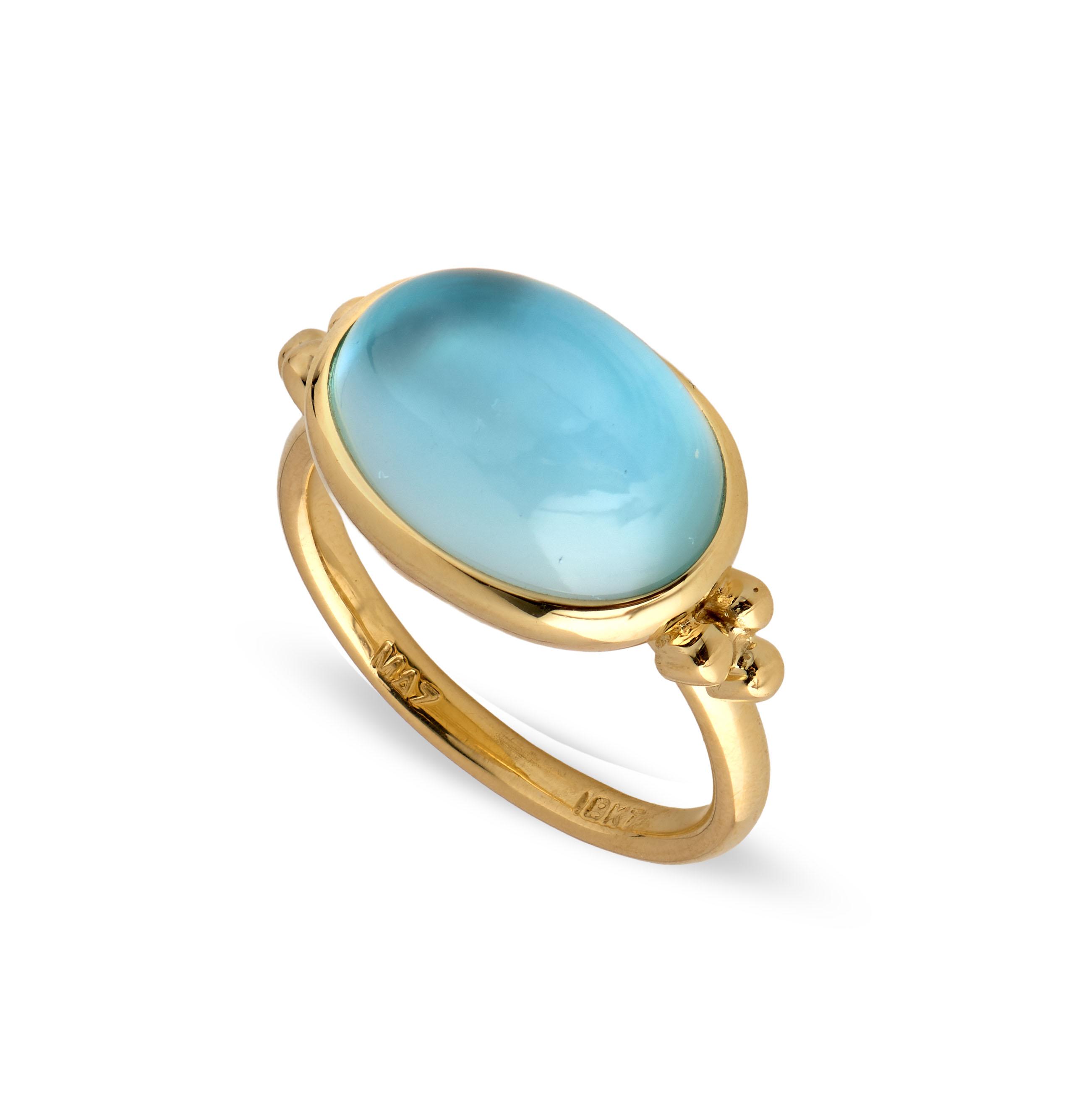 18K Yellow Gold Blue Topaz Cabochon Ring