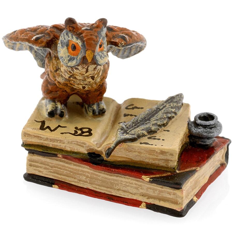 - Austrian Bronze Owl on Books with Inkpot Figurine