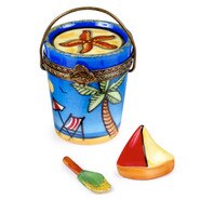 Beach Bucket with Sailboat and Shovel Limoges Box