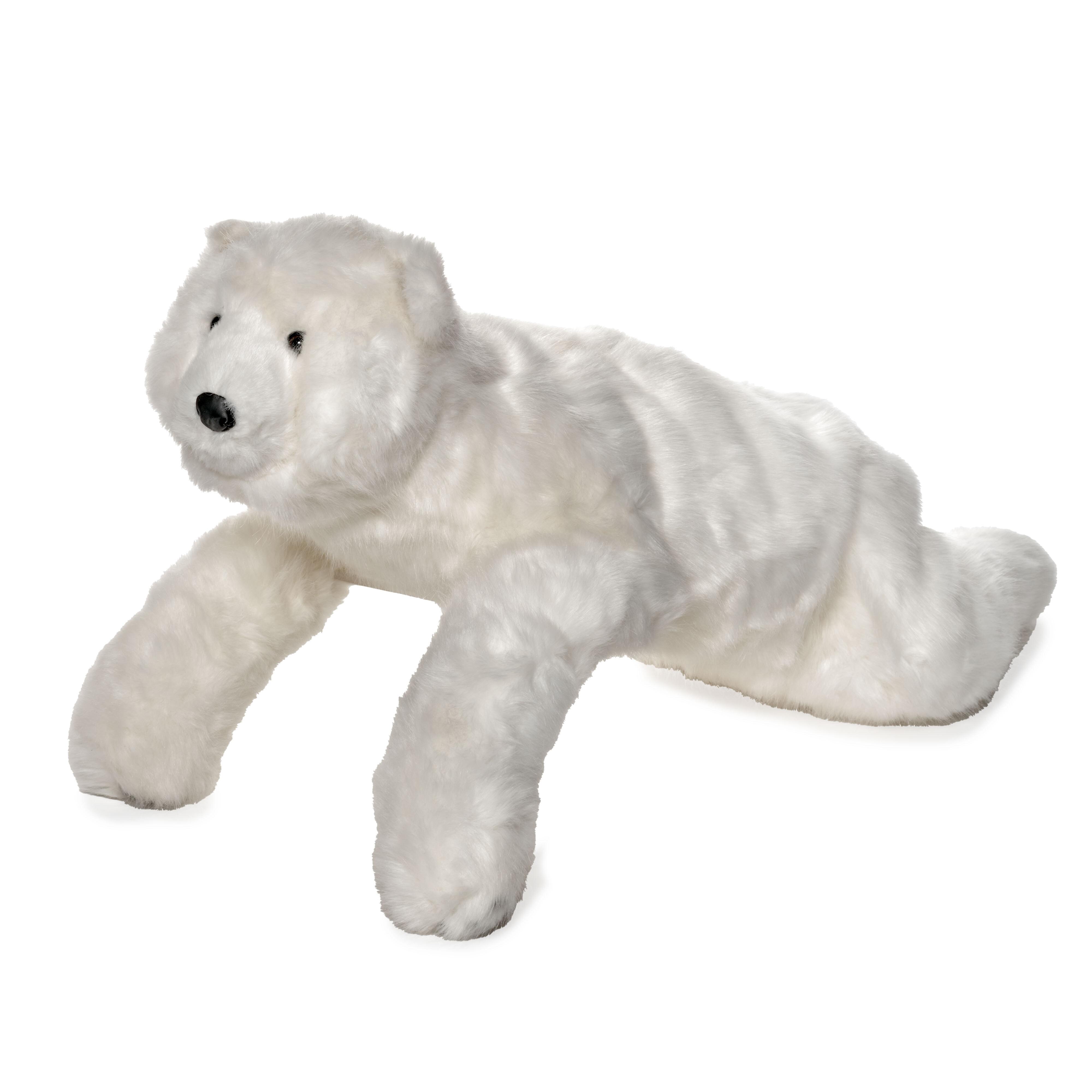 Wonderful floppy faux white bear cub is completely flexible, with plastic joints, plastic pebbles in its paws, and polyester fiberfill. Fabulous and friendly, Bear Hugs can lie in front of your feet, drape over the side of a couch, or rest cozily at the foot of your bed. Made in America. Please note: this is not for children under three.