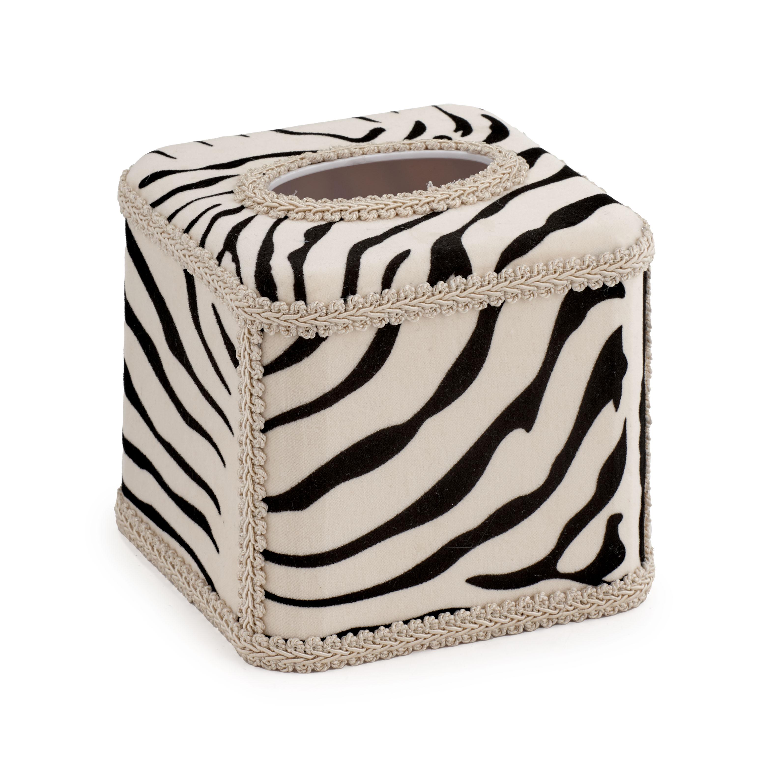 - Black Zebra Velveteen Wastebasket & Tissue Box Cover