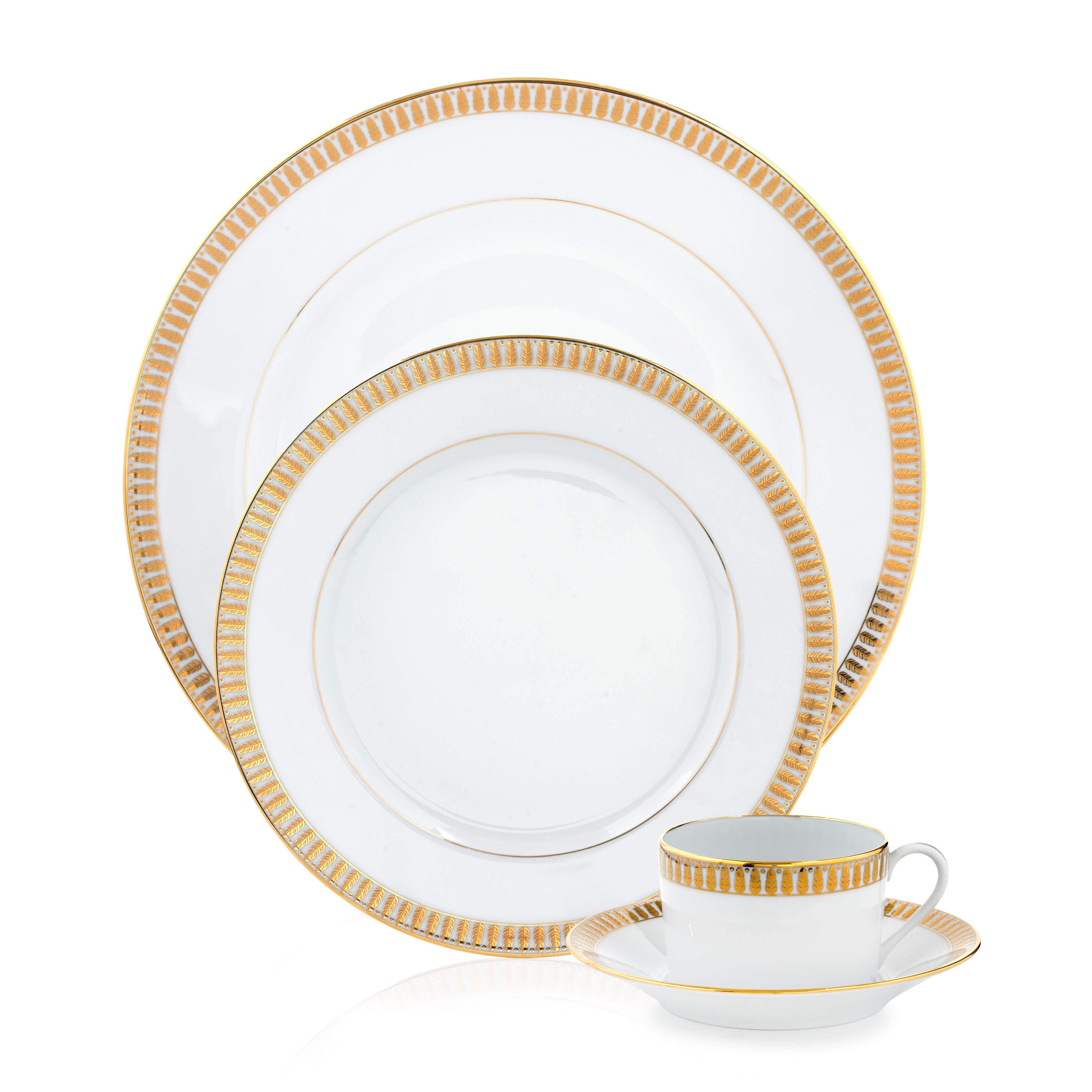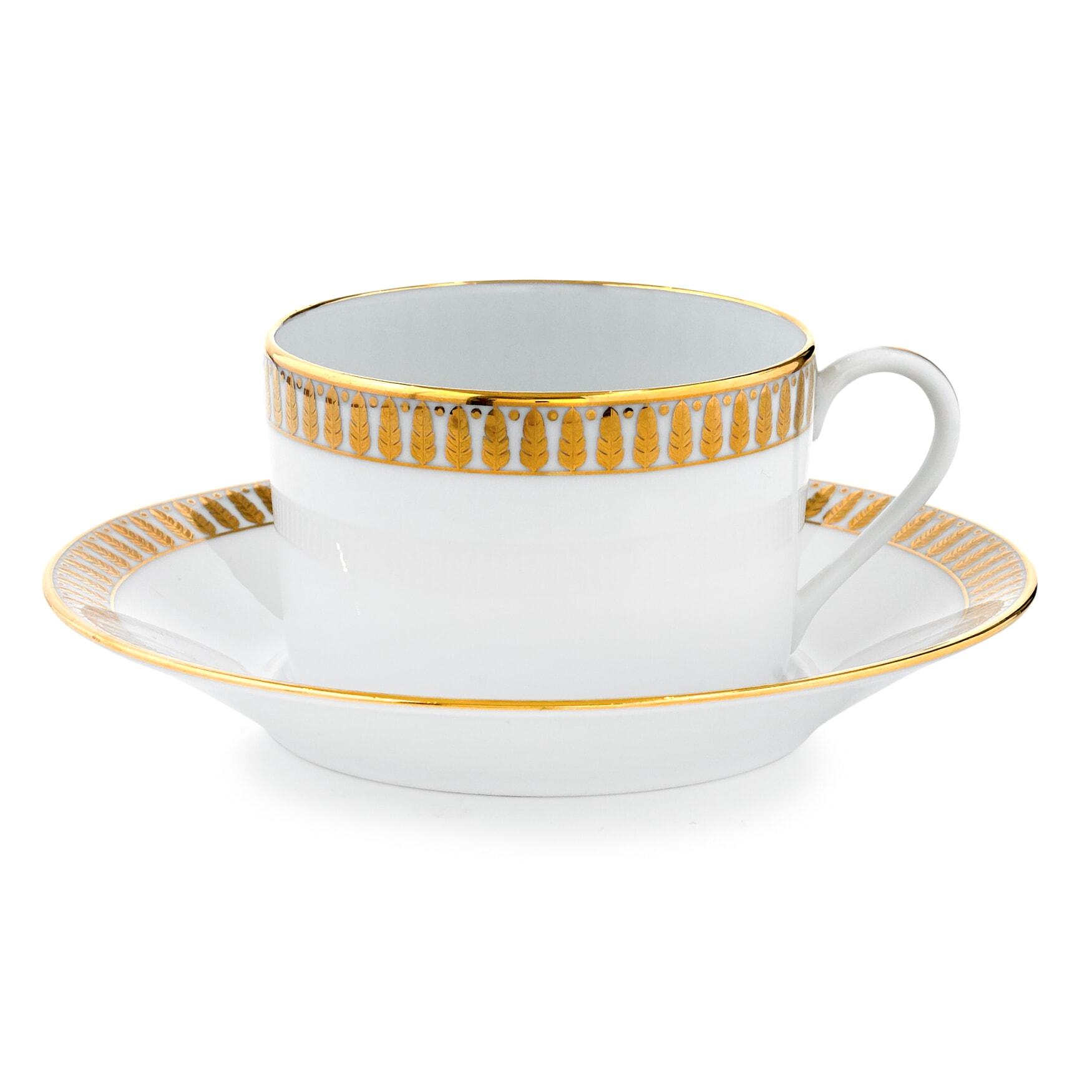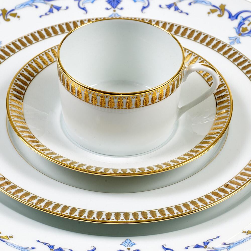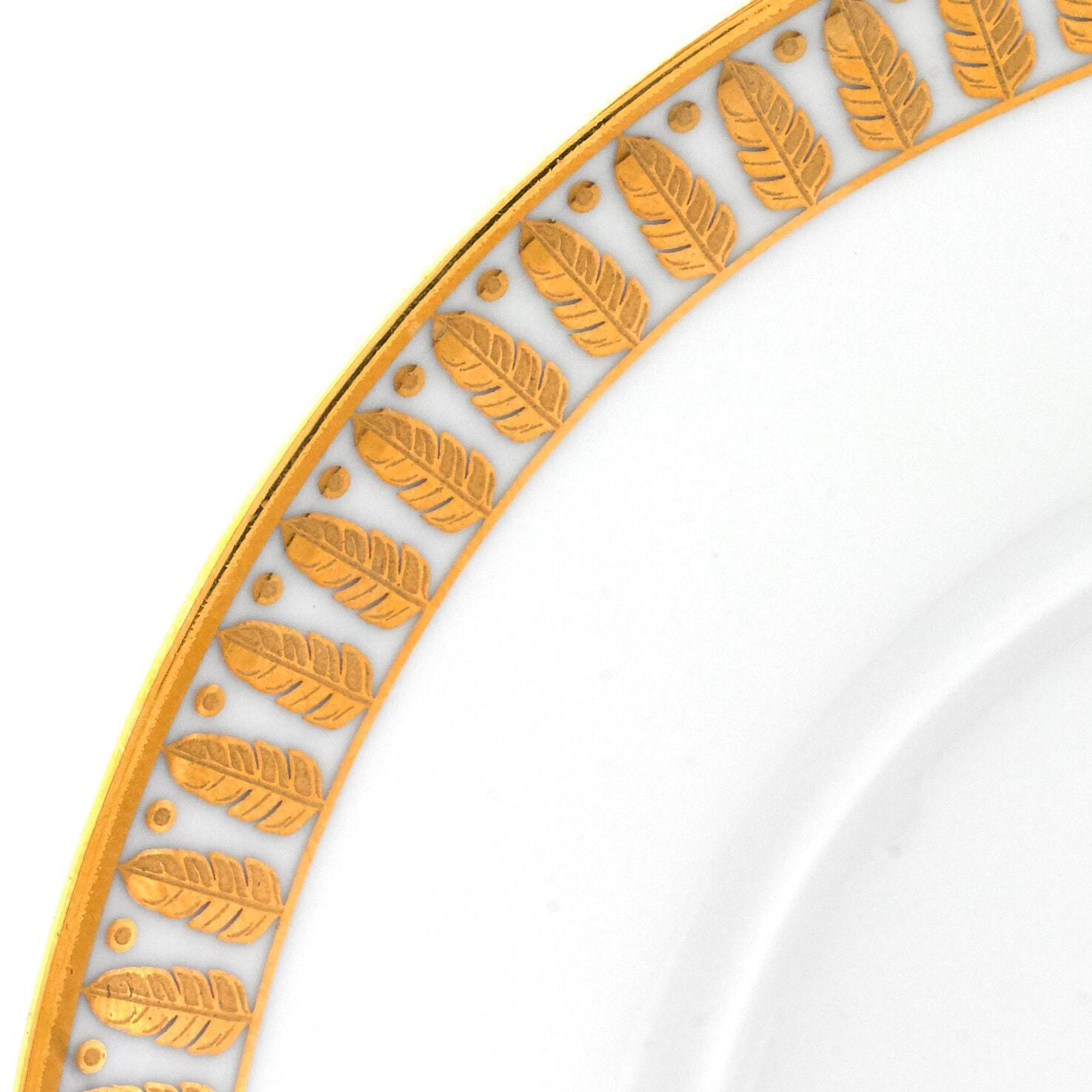 Inspired by our aviary friends, the fabulous Plumes Or features a beautiful band of fine gold feathers rimming each piece. Let your meals take flight with 22k gold feathers in an understated pattern that exemplifies the craftsmanship and artistry of Haviland. Fine porcelain handmade in Limoges, France.
