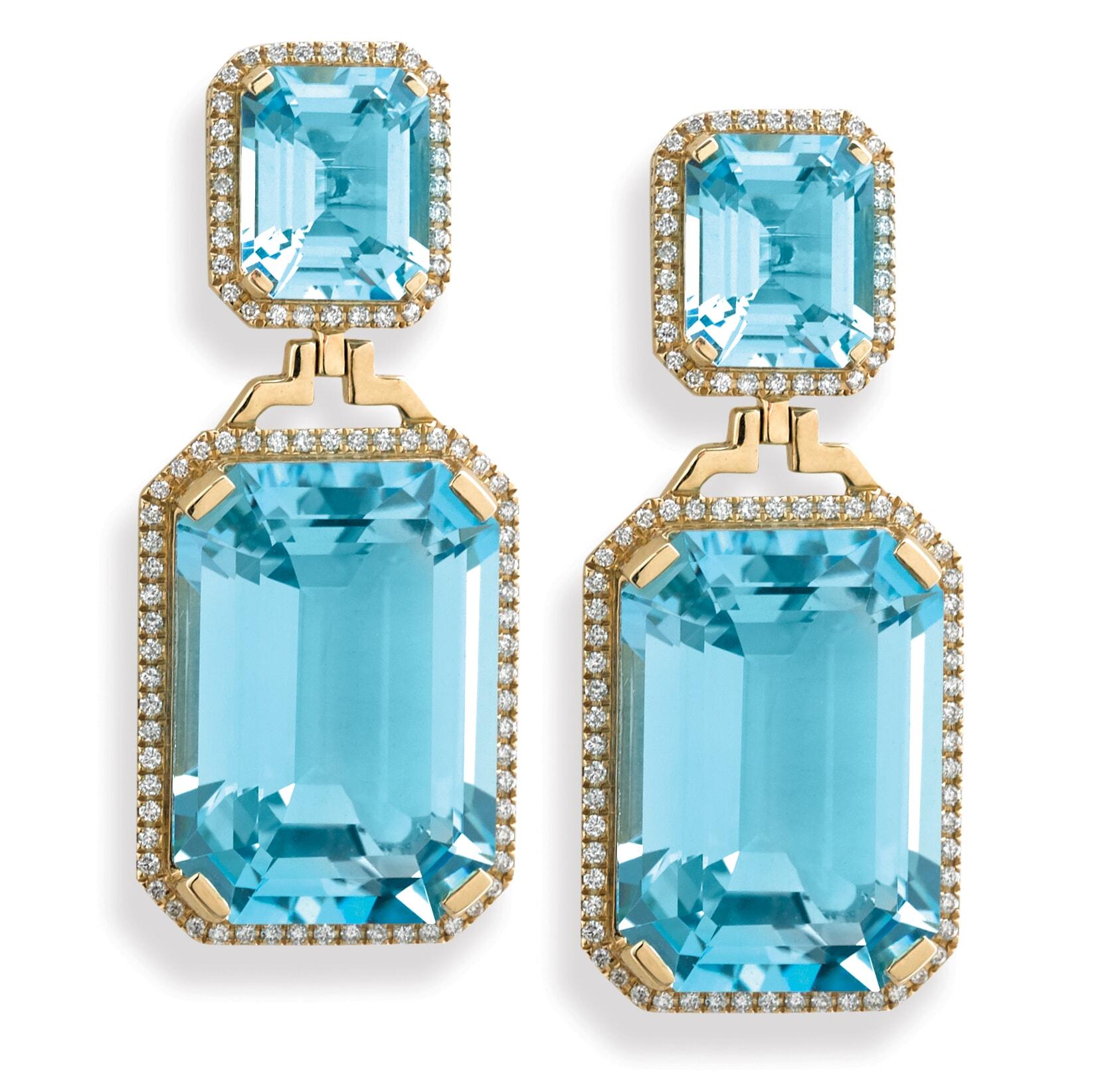 Blue Topaz Earrings with Diamonds