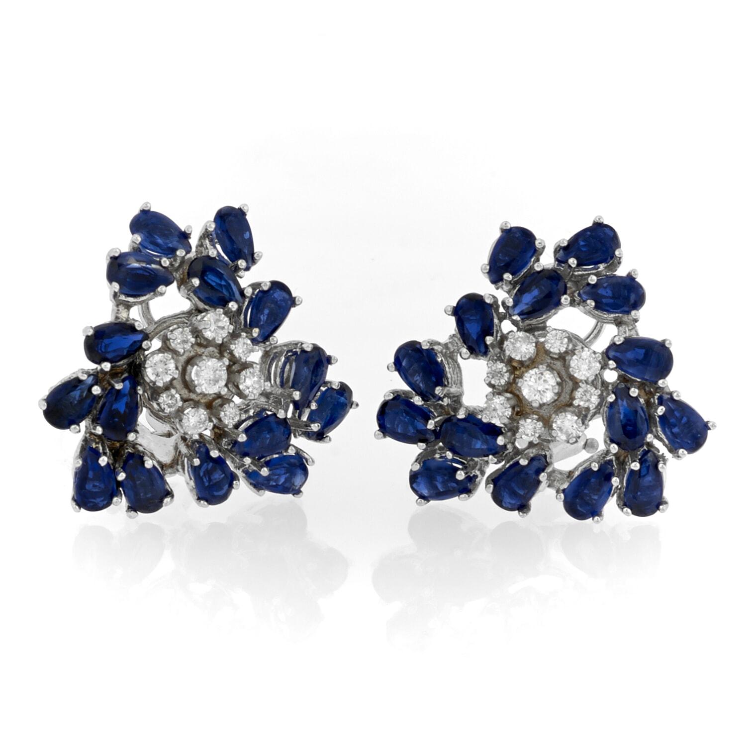 18k White Gold Kyanite Spread Flower Earrings with Diamonds