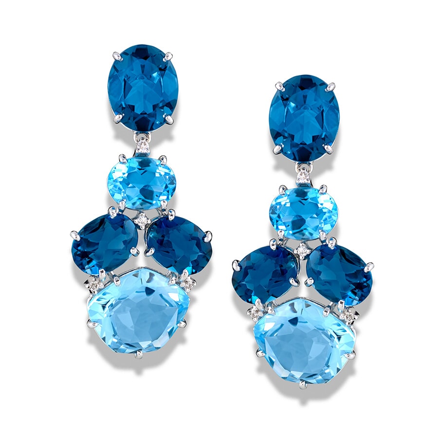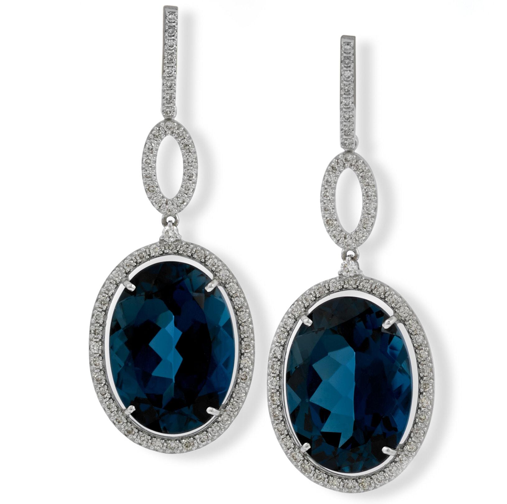 18k White Gold London Blue Topaz Diamond Drop Earrings