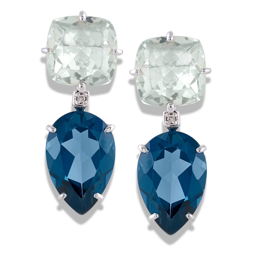 18k White Gold London Blue Topaz and Prasiolite Drop Earrings