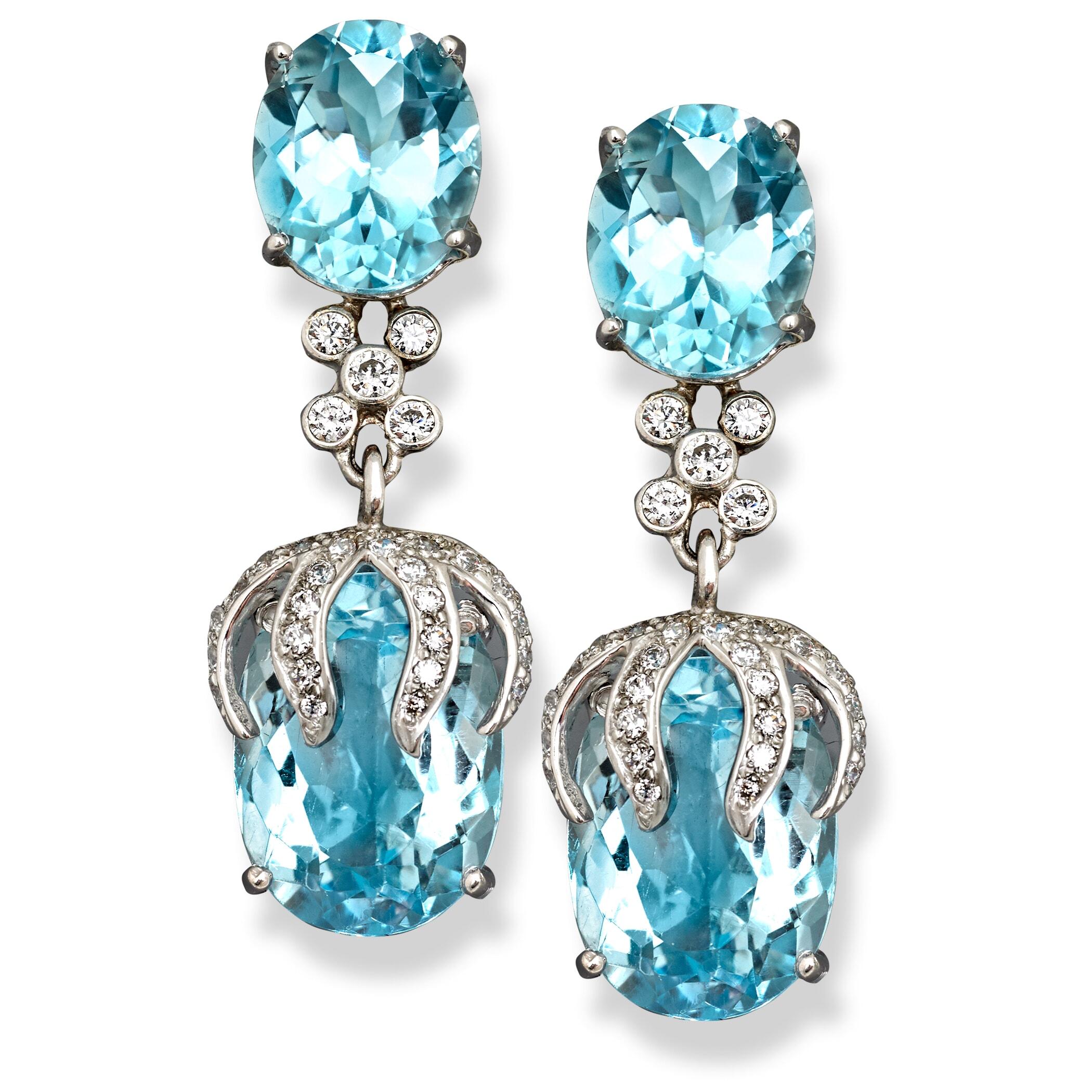 18k White Gold London Blue Topaz & Diamond Ice Earrings