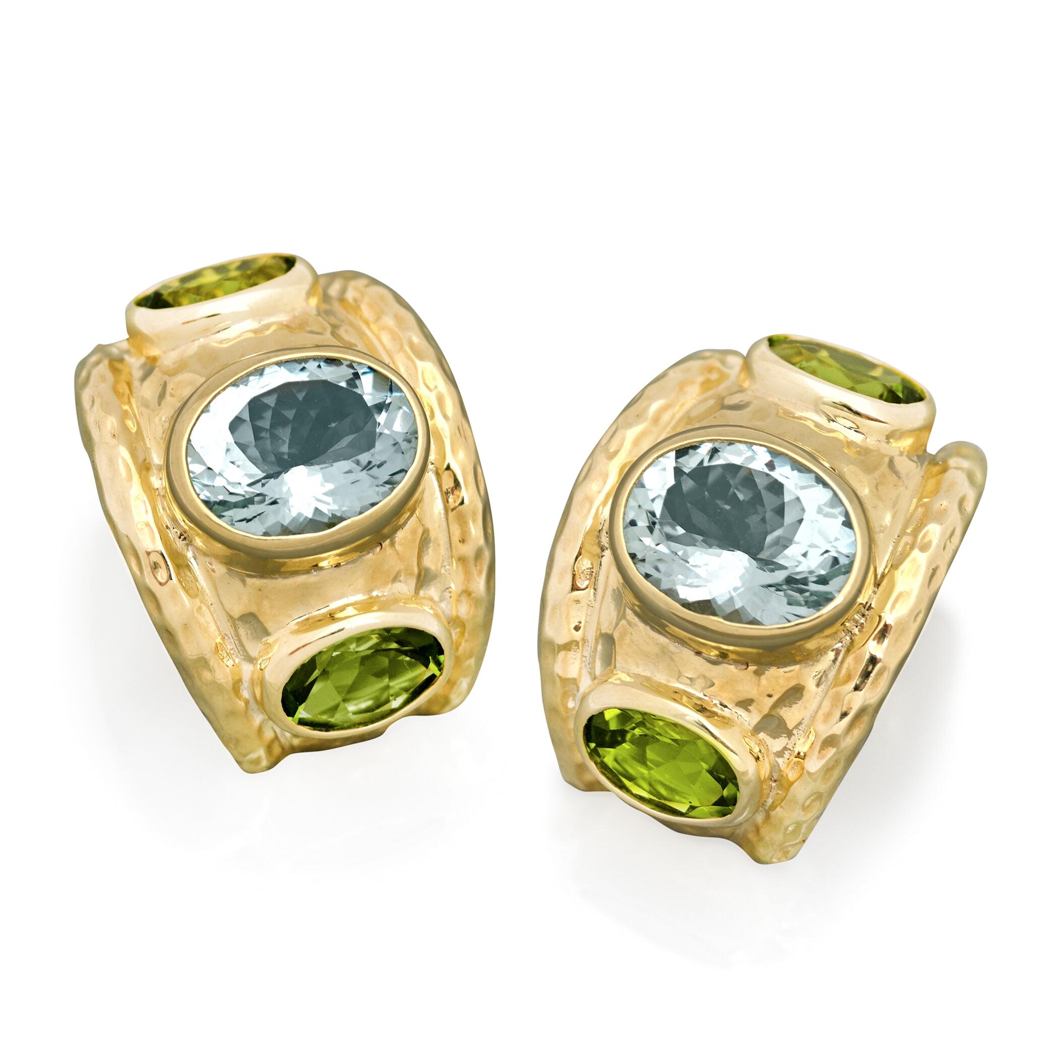 18k Gold Blue Topaz & Lemon Citrine Reversible Earrings