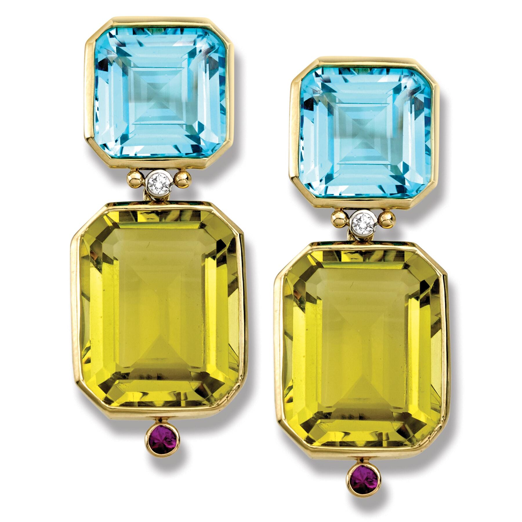 18k Gold Blue Topaz, Citrine, & Lemon Citrine Earrings