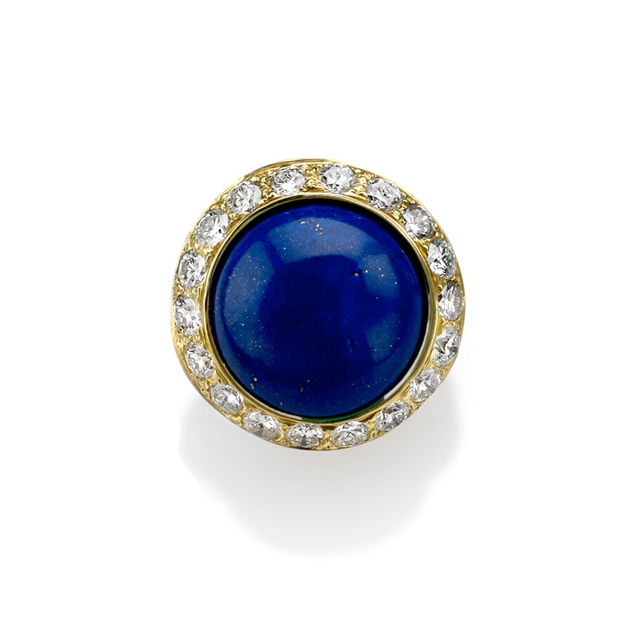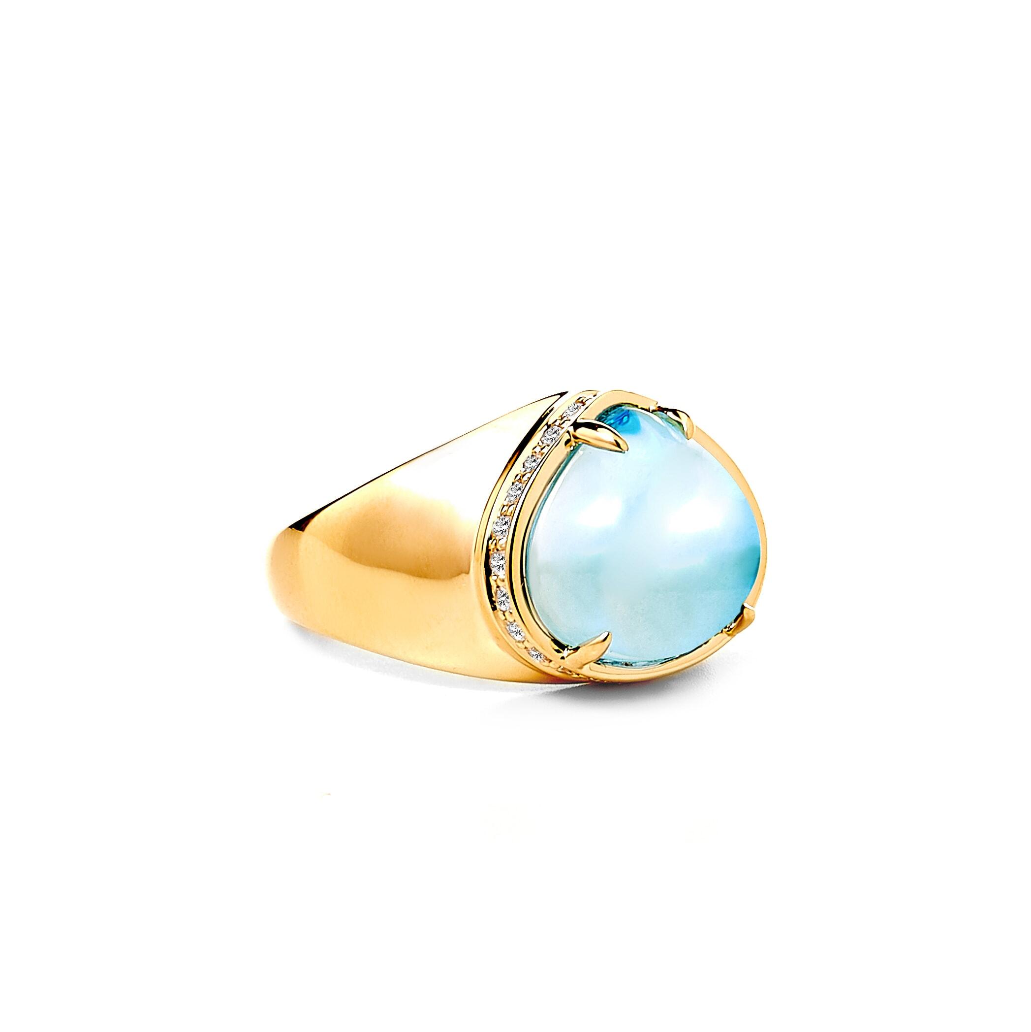 18K Yellow Gold Blue Topaz Cabochon Ring