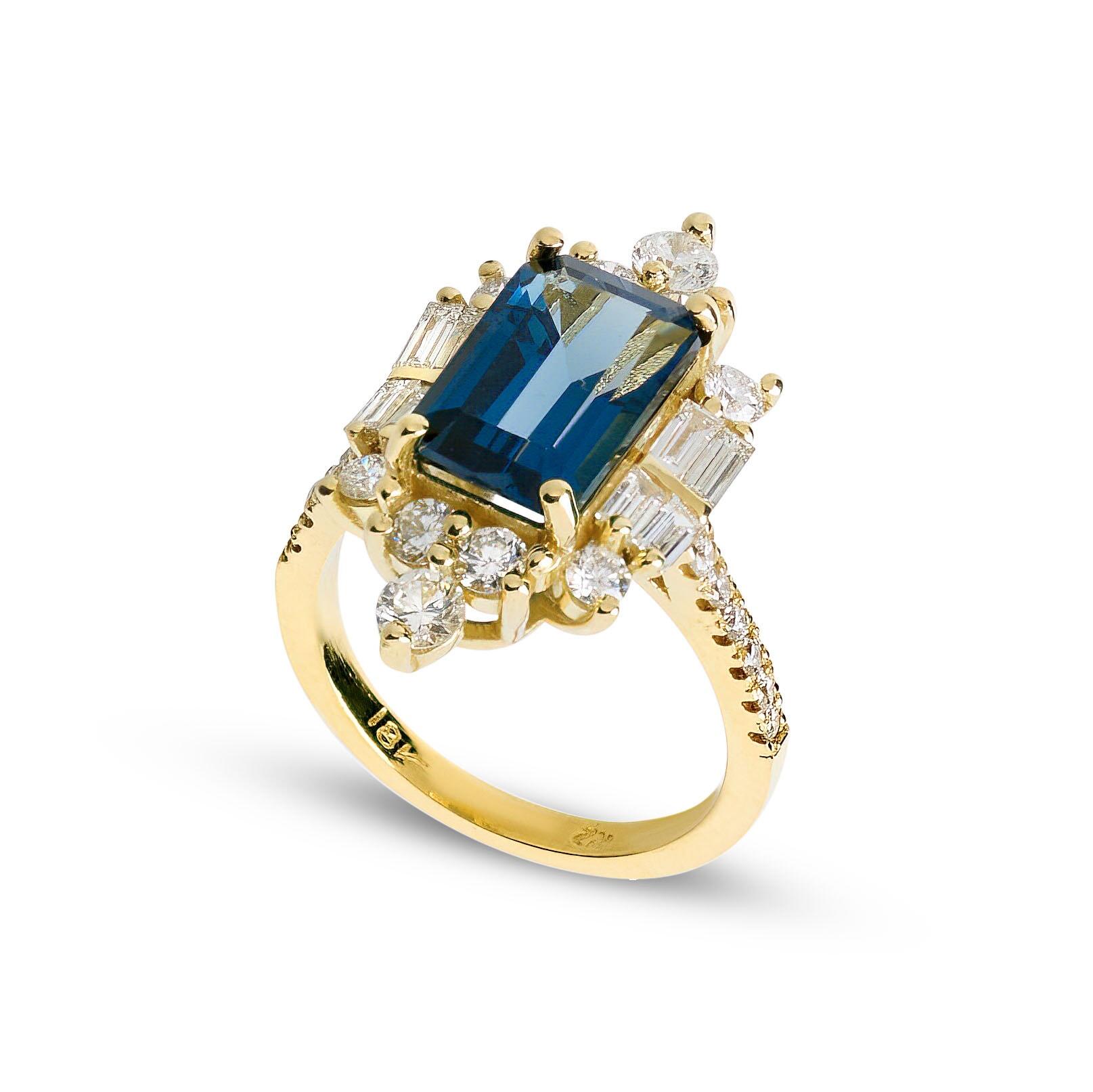 18K Yellow Gold Royal Deco Blue Topaz Diamond Ring