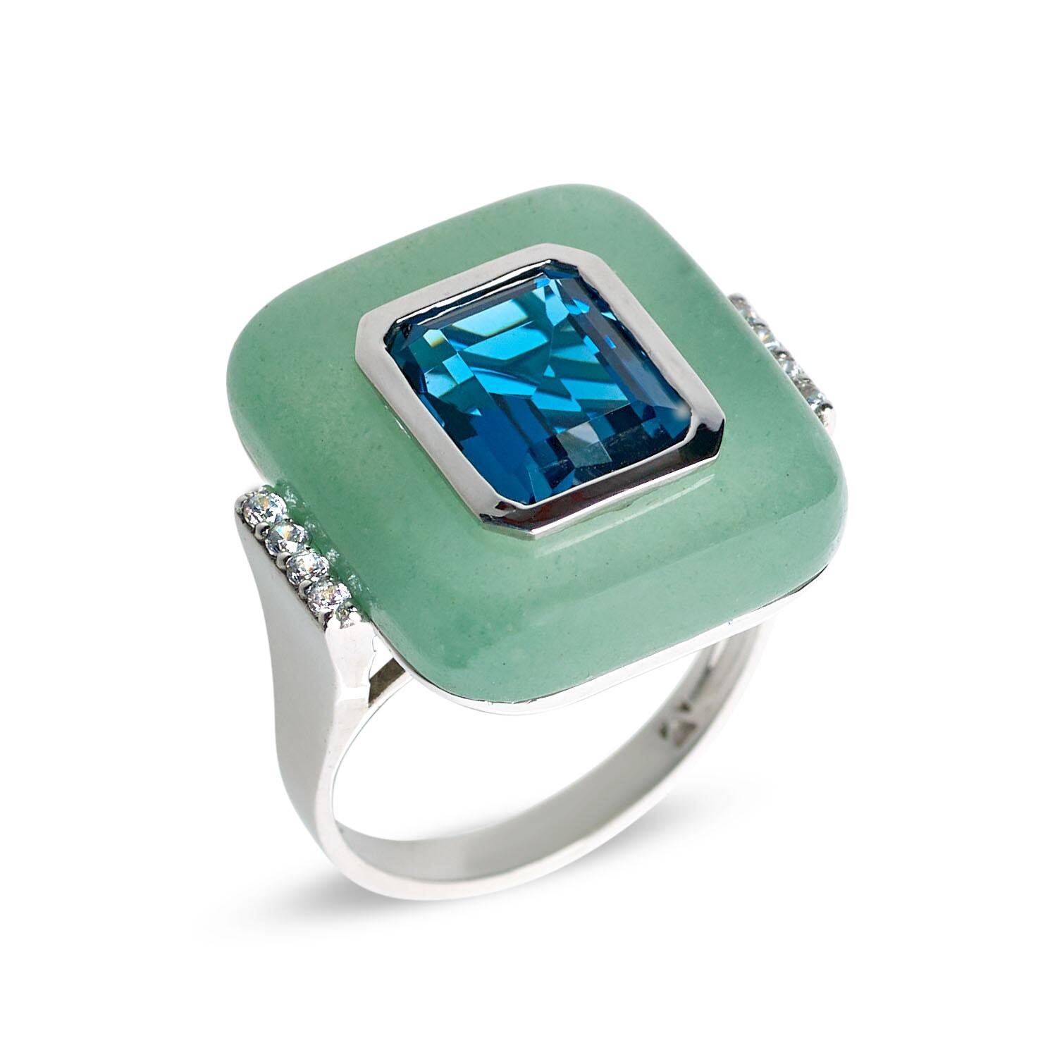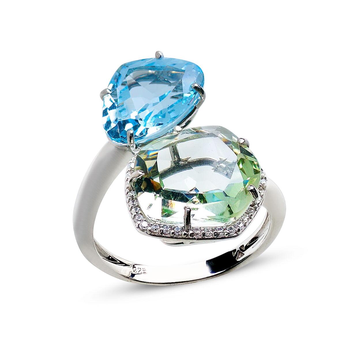 18k White Gold London Blue Topaz Mint Emerald Quartz Ring