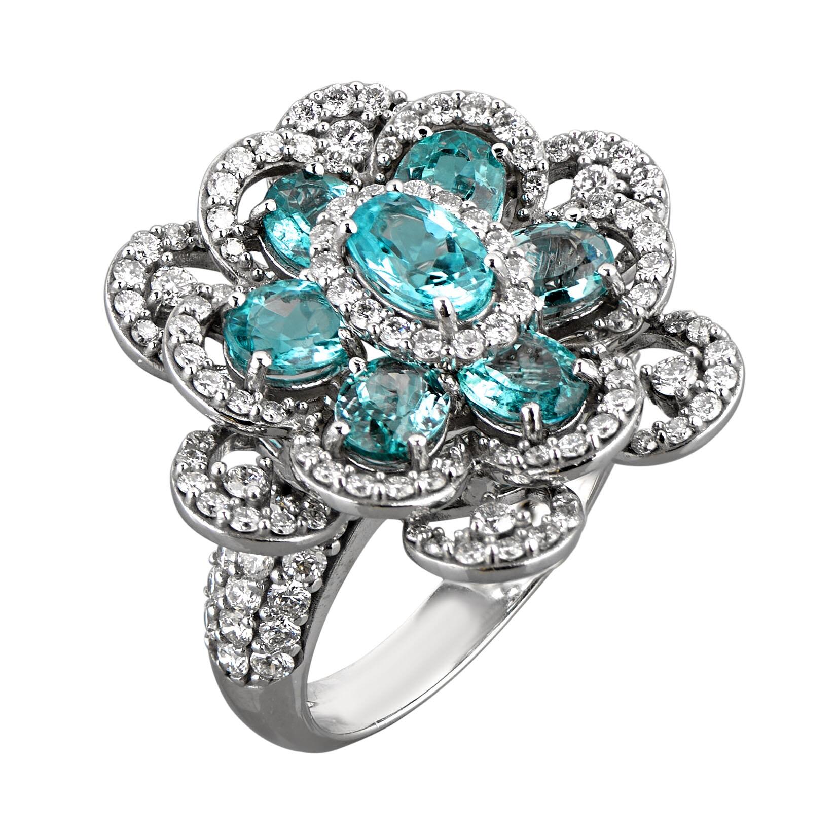 18K White Gold Oval Aquamarine Diamond Cluster Ring