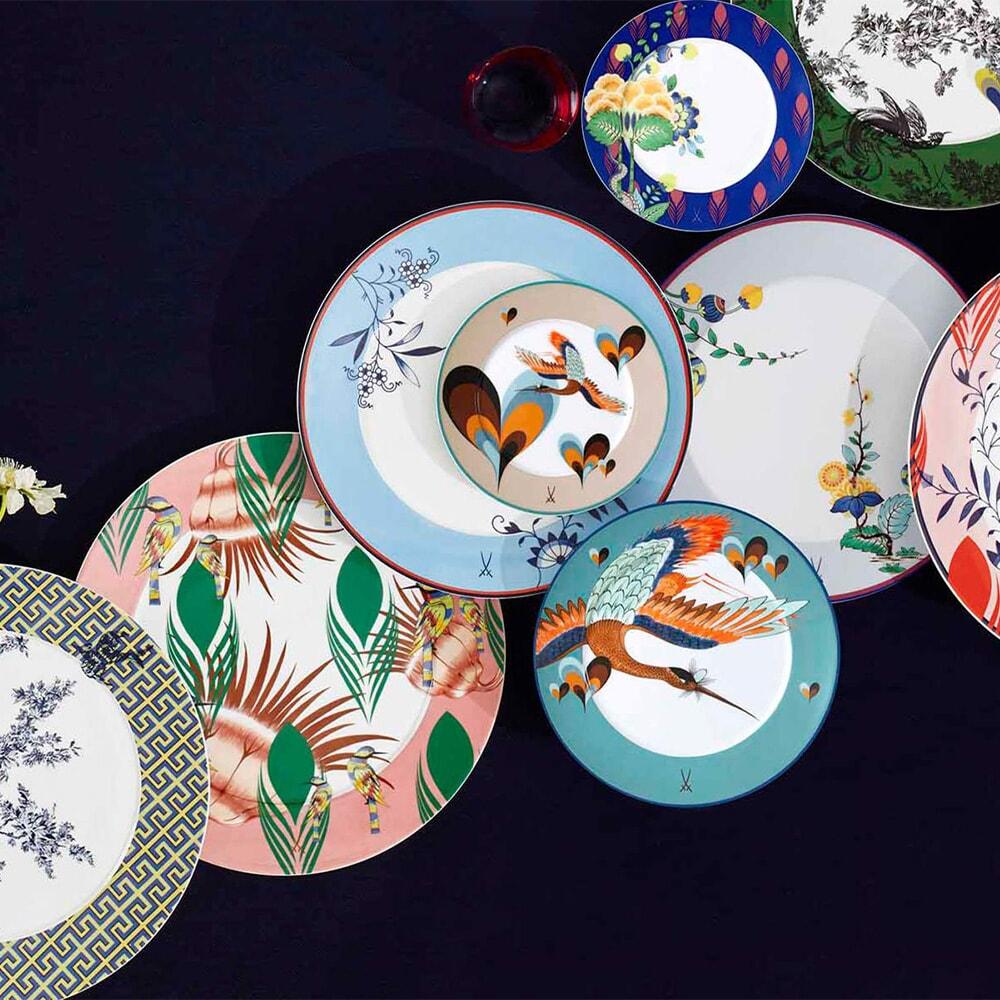 Collage draws on Meissen's rich 300-year archive and reinterprets historical décor elements to impressive effect. The result is a series of virtuoso designs that merge tradition with modernity, creating exciting contrasts that lend the unmistakable style of the manufactory and its iconic porcelain art a personal touch. The collection is conceived as an invitation to discover one’s own creativity, allowing you to combine the various Collage motifs or introduce into existing collections, such as Blue Onion or Royal Blossom. Each piece can be stacked and is both dishwasher and microwave safe. Handmade in Germany.