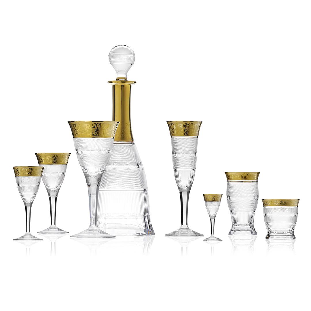 Designed in 1911, the Splendid collection is considered to be the magnum opus of Moser design. The whole world saw the beauty in 1947, when the Czechoslovak president Edvard Beneš gave Splendid to Her Majesty Queen Elizabeth II, as a wedding present. Splendid is fully diamond crosscut by hand and topped off with a dramatic 24k gold band that is handpainted and fired before being polished with agate and hematite. Every piece passes through at least 36 pairs of hands before it is complete. Mouthblown and handcut of the world's finest lead-free crystal in the Czech Republic.