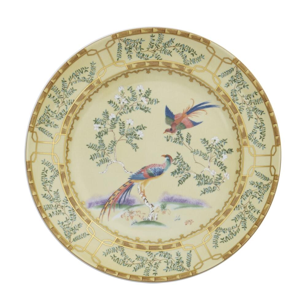 18th century Chinese hand painted wallpaper in the dining room of the Lightfoot House in Colonial Williamsburg was the inspiration for this exquisite pattern. The decoration incorporates blossoming trees, hanging baskets of flowers and exotic birds. Chinese decorative arts, known as Chinoiserie, were popular in the 18th century and continue to be today.