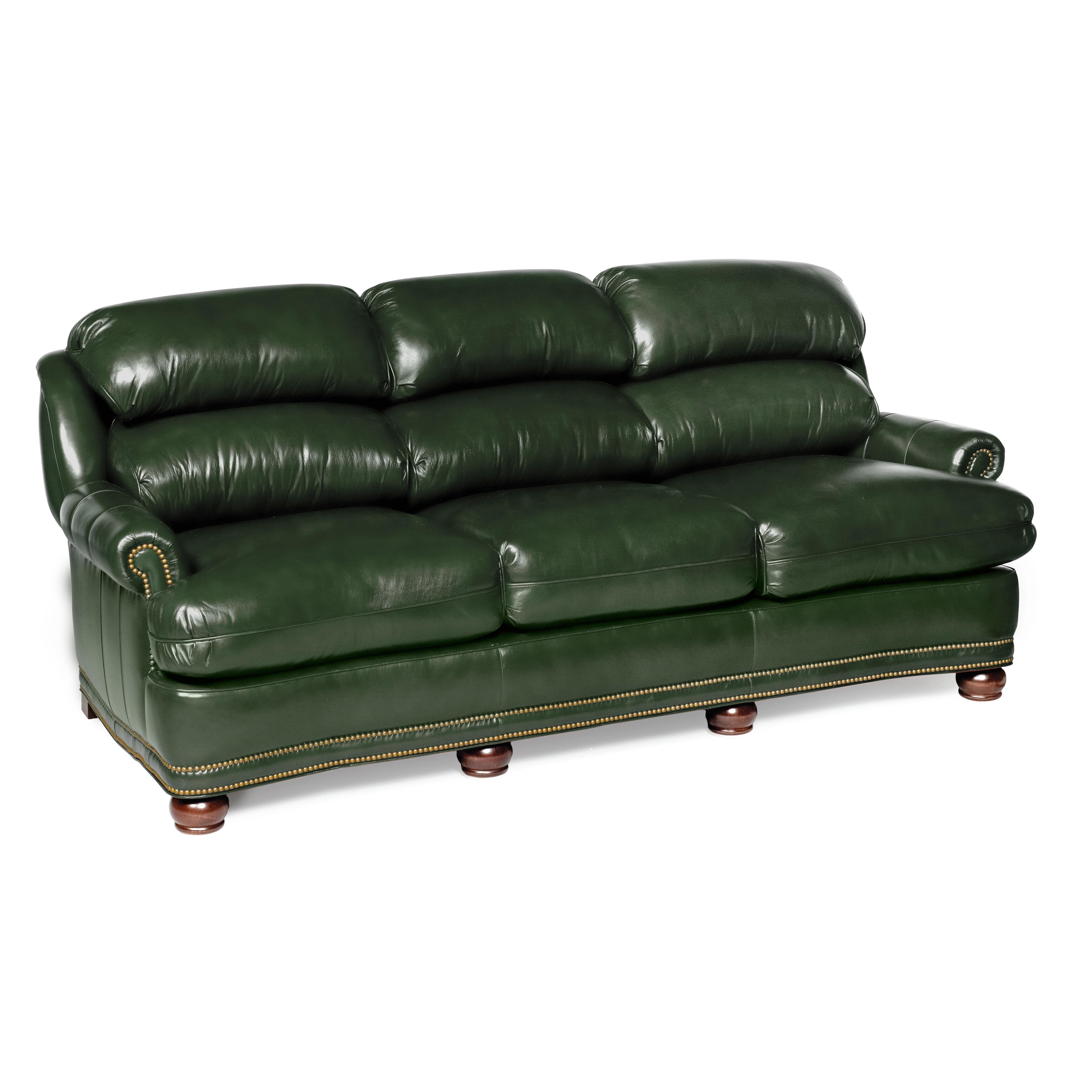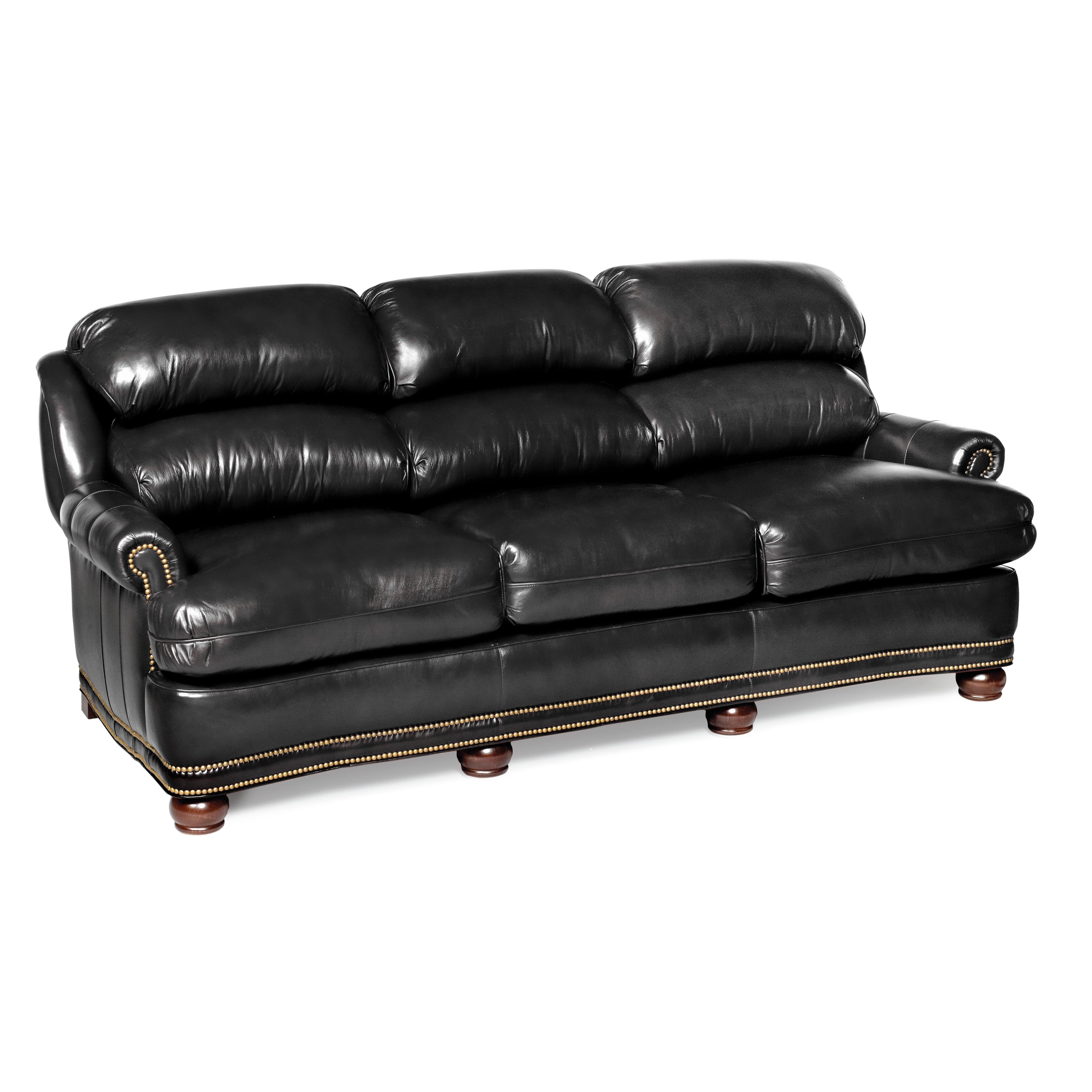 One of our most comfortable sofas imaginable! You will sink into it and be indescribably happy. Lushly crafted and entirely handmade by master craftsmen in America. Top grain leather and special cushioning carefully selected to retain their shape while remaining soft and comfortable. Measures 86” w. x 40” d. x 36” h. Inside 73” w. x 21” d. Seat height 20”. Arm height 23”.