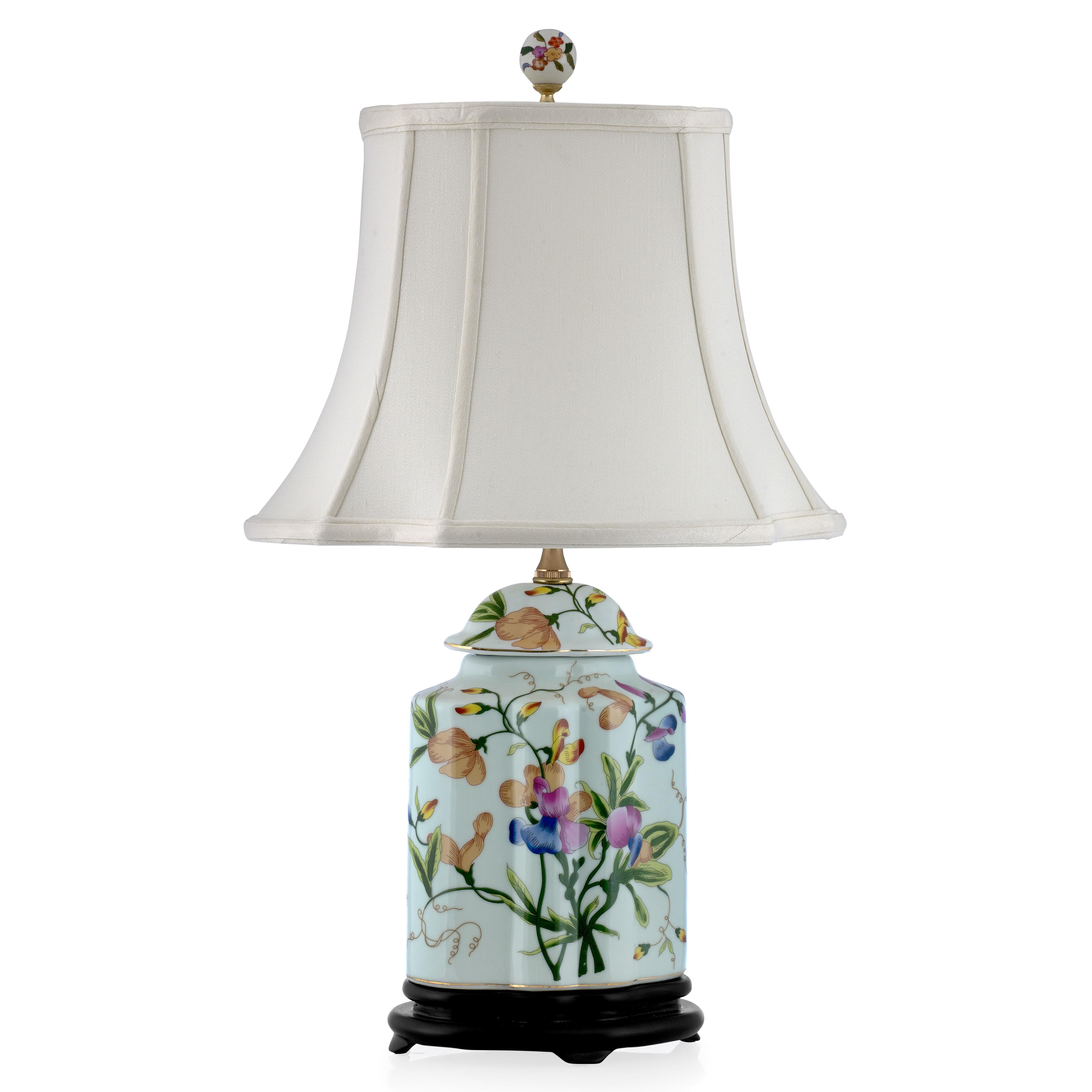 This lamp is just the right size for a medium sized table.The proportions are just right and the floral work has clean lines with bright colors. It is simply beautiful!