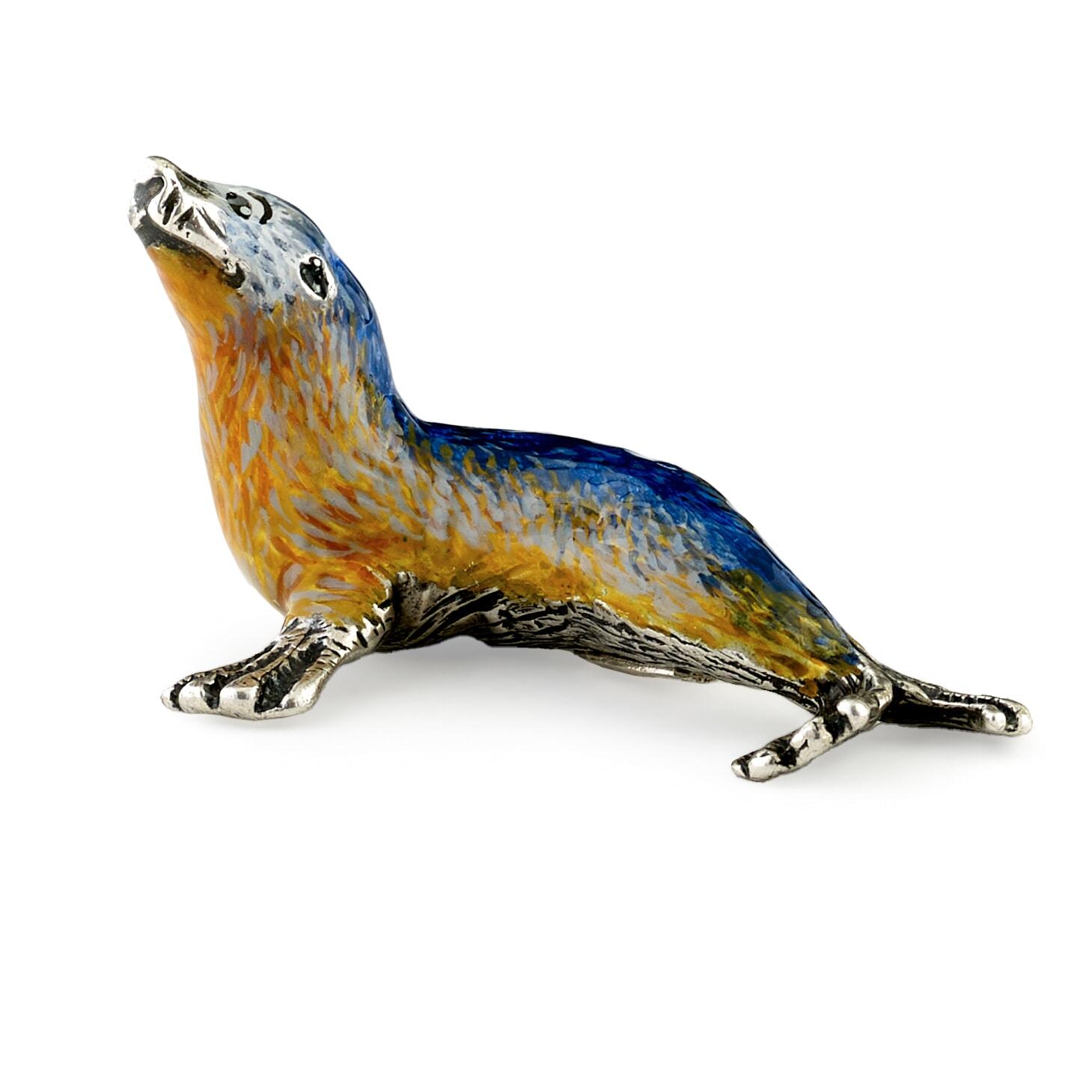 - Sterling Silver and Enamel Seal, Blue and Yellow