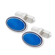 Sterling Silver Blue & Cobalt Sunburst Oval Cufflinks