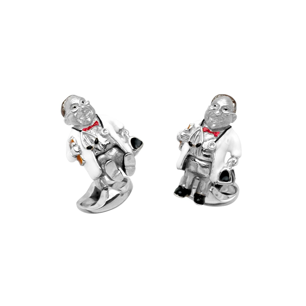 These unique doctor cufflinks have moving arms & legs and are coloured with white and red enamel. They have a small domed oval spring link fitting.
